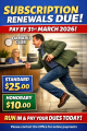 MEMBERSHIPS: these are due 31 March, thanks to those who have already paid and please make sure to collect these from the Bar ASAP please pay at the Office or Bar, reminder NO eftpos at the office.